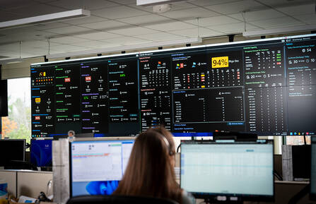 To help them do their job, the center uses large monitors that track open beds, hospital admissions, and DHART transport.